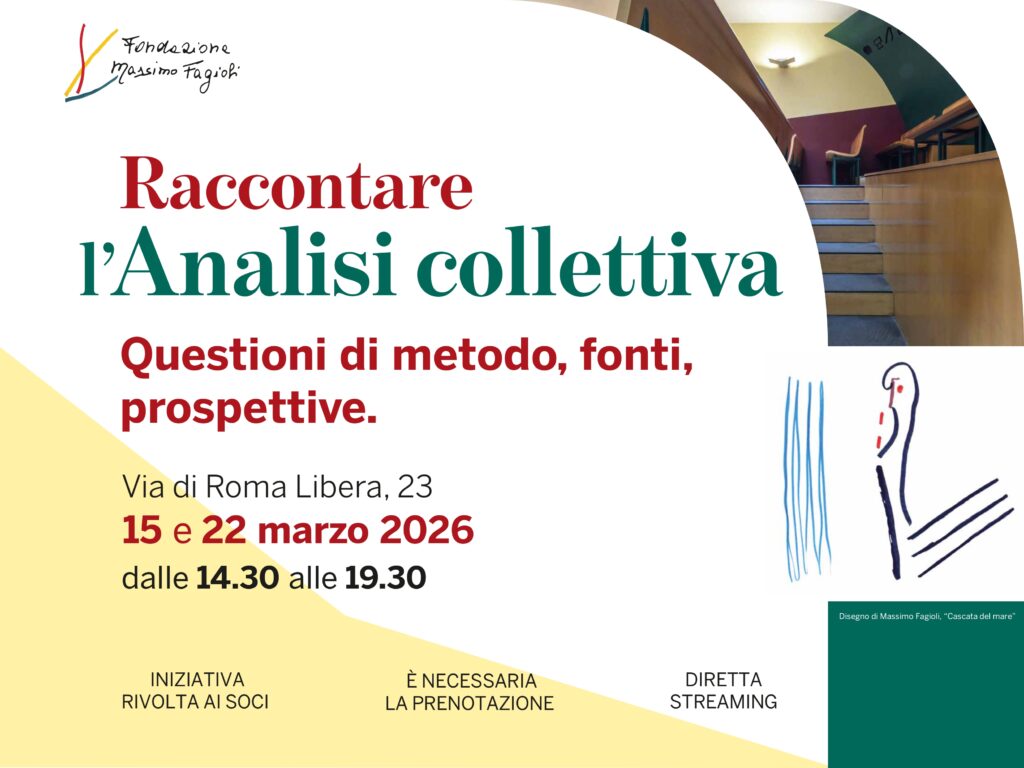 Nell’ambito delle iniziative ideate e promosse dai Laboratori della Fondazione, sono in programma due giornate di studio per condividere una riflessione comune su come studiare, e poi raccontare, la storia dell’Analisi collettiva. L’iniziativa è quindi pensata come una prima occasione di confronto scientifico e metodologico, dal carattere informale e rivolta a tutti i Soci.